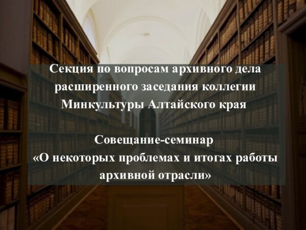 Материалы секции по вопросам архивного дела расширенного заседания коллегии Минкультуры Алтайского края и совещания-семинара «О некоторых проблемах и итогах работы архивной отрасли»