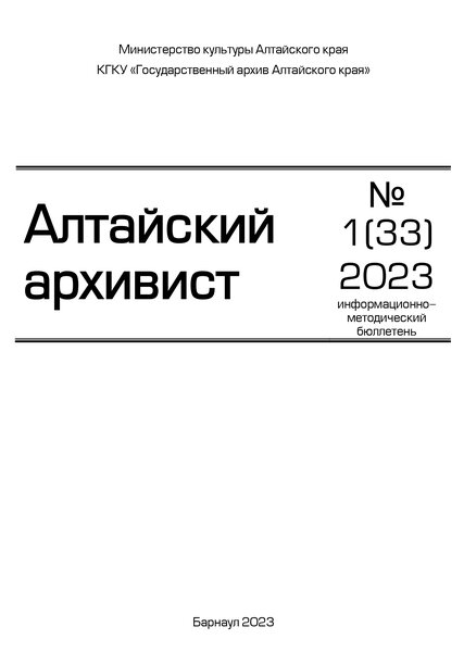 Алтайский архивист № 1(33) 2023: информационно-методический бюллетень Министерства культуры Алтайского края, КГКУ «Государственный архив Алтайского края». Барнаул, 2023. 157 с.: ил.