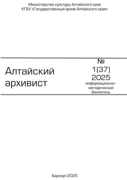 Алтайский архивист № 1(37) 2025: информационно-методический бюллетень Министерства культуры Алтайского края, КГБУ «Государственный архив Алтайского края». Барнаул, 2025. 271 с.: ил.